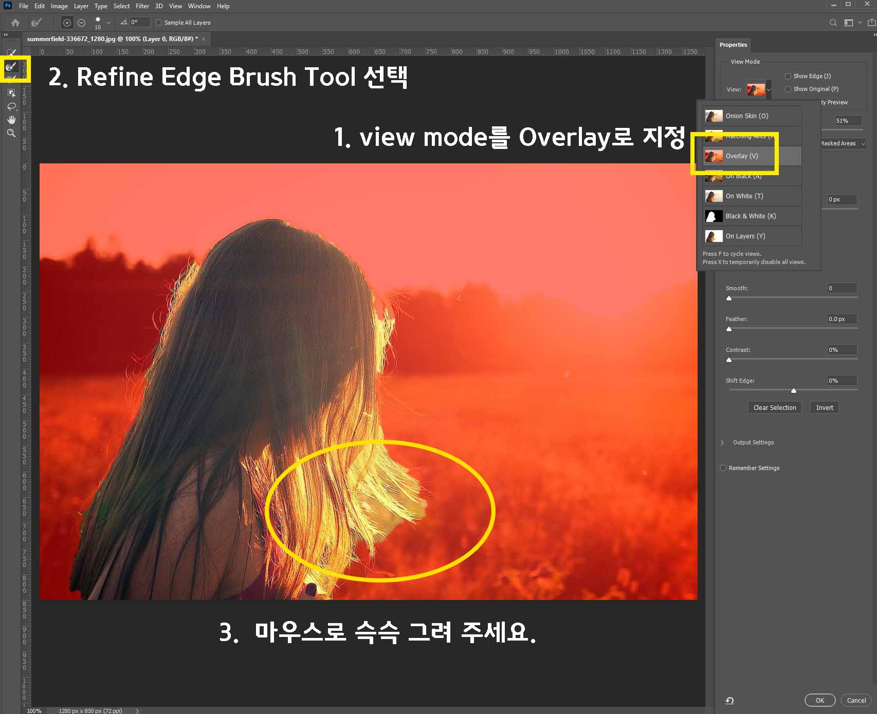 1) 메뉴에서 Select - Select and Mask 선택