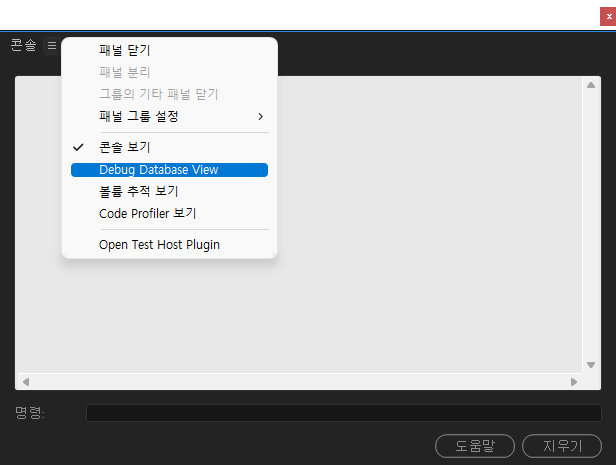 - 콘솔 옆 3개 바 클릭 > Debeg database View 클릭합니다.